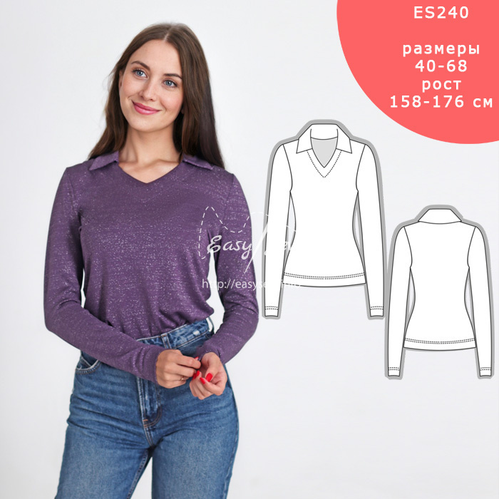 Скоро! [Шитьё] Лонгслив с воротником. Размер 40-68. Рост 164 [easysew]