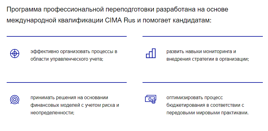 Управление затратами для создания стоимости;Принятие инвестиционных решений;Управление эффективностью и контроль центров ответственности;Риск и контроль.Посмотреть детальный Учебный план Р2 «Управление эффективностью бизнеса».