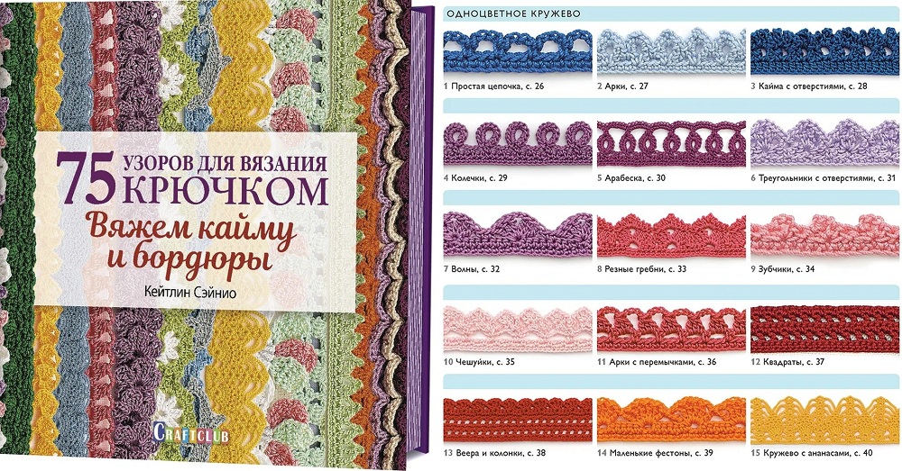 [Вязание] 75 узоров для вязания крючком. Вяжем кайму и бордюры [Сэйнио Кейтлин]