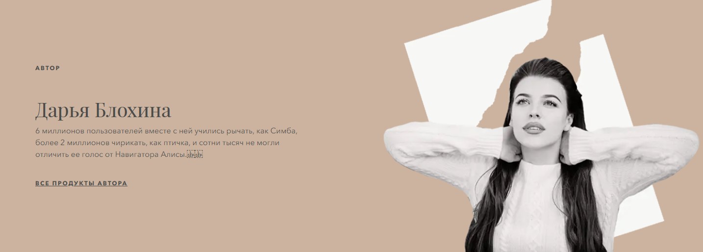 Уникальный авторский продукт от Дарьи Блохиной, основанный на личном педагогическом опыте и теоретических знаниях. Автор более четырех лет работала ведущей на телевидении, два года - на радио, а в настоящее время озвучивает рекламу, фильмы и сериалы. Дарья успешно проводит персональные тренинги, а её студенты работают дикторами и озвучивают фильмы и книги.